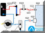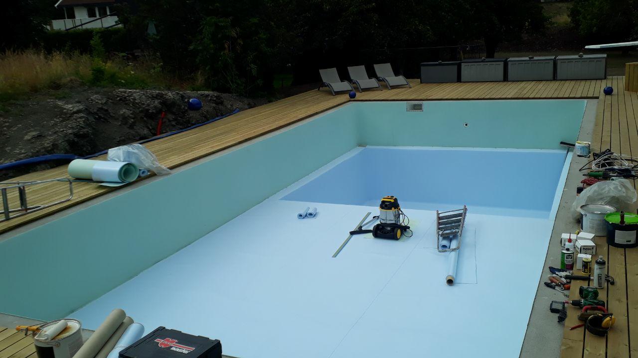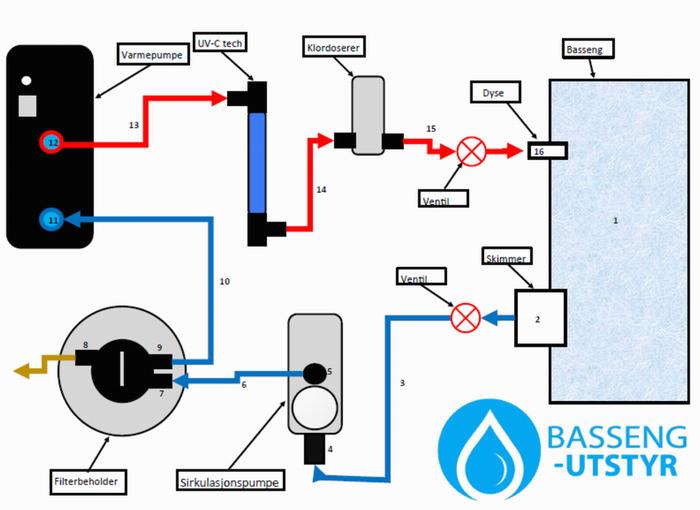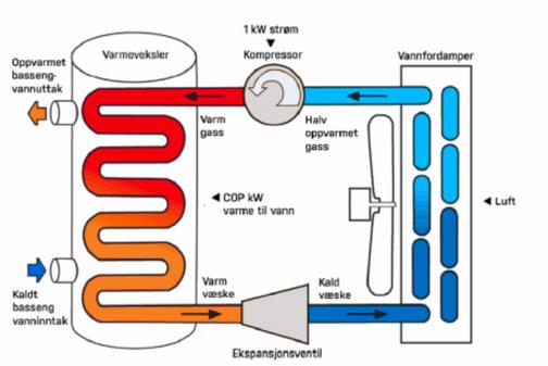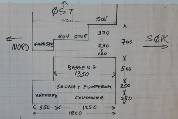 above the pool patio. Oppvarming blir en 16 KW's varmepumpe