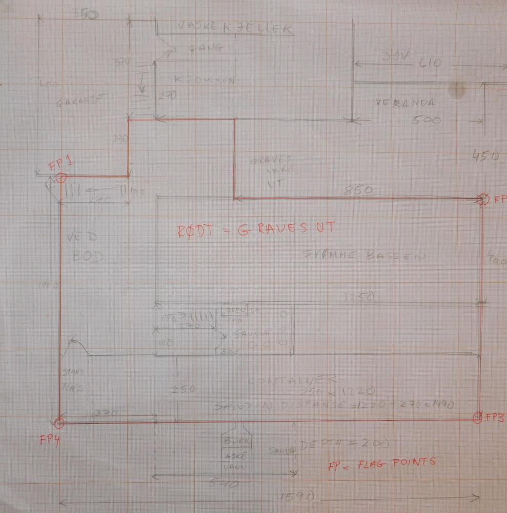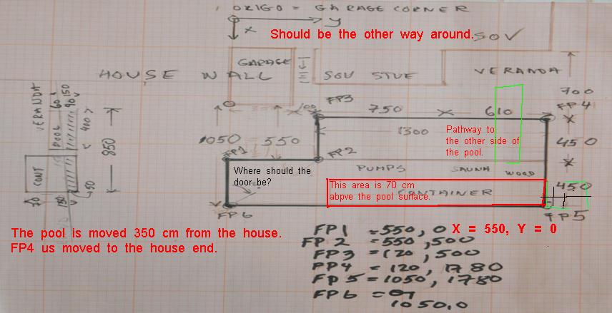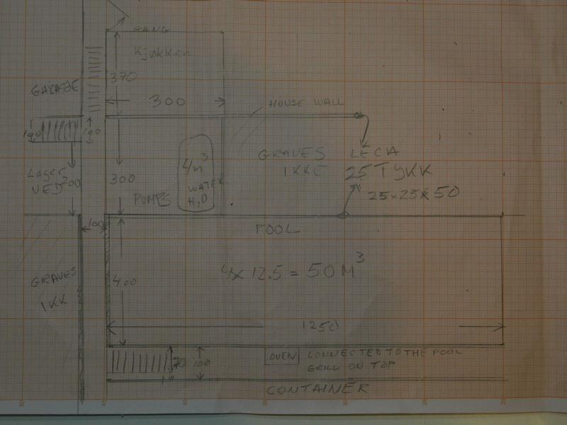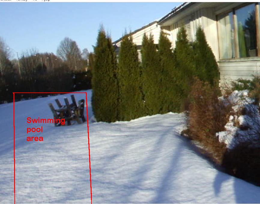 Then we get a big free area approx. 15 x4 meters for pool space.