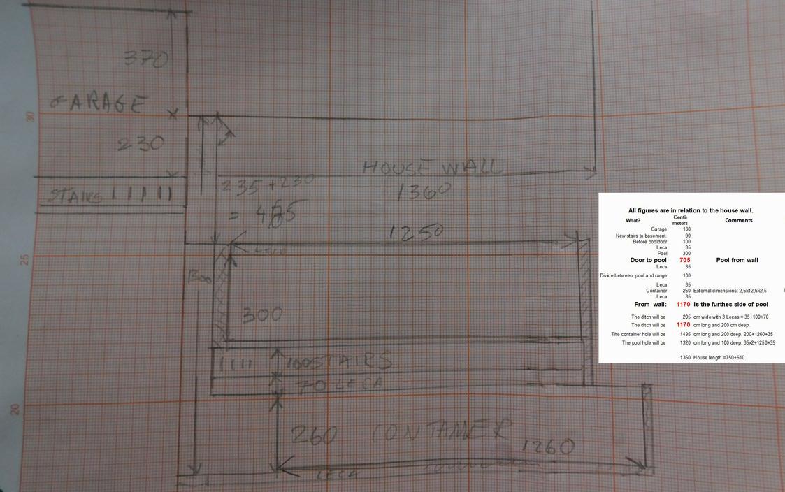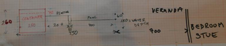 container 190 cm below the veranda. Then 30 cm sticks up above the pool.